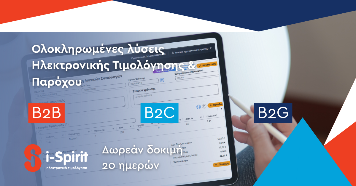 Δημιουργείστε επαγγελματικά τιμολόγια και αποδείξεις με ένα click.